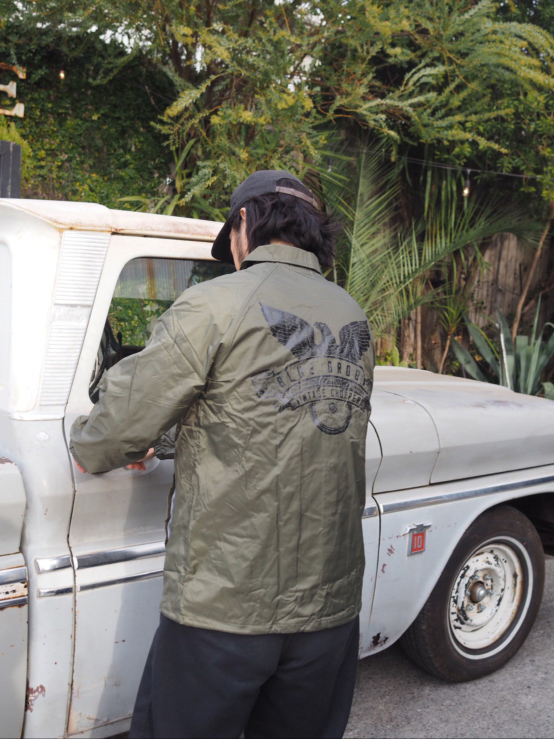 "BRING 'EM BACK TO LIFE" Waterproof Nylon Coach Jkt - Olive